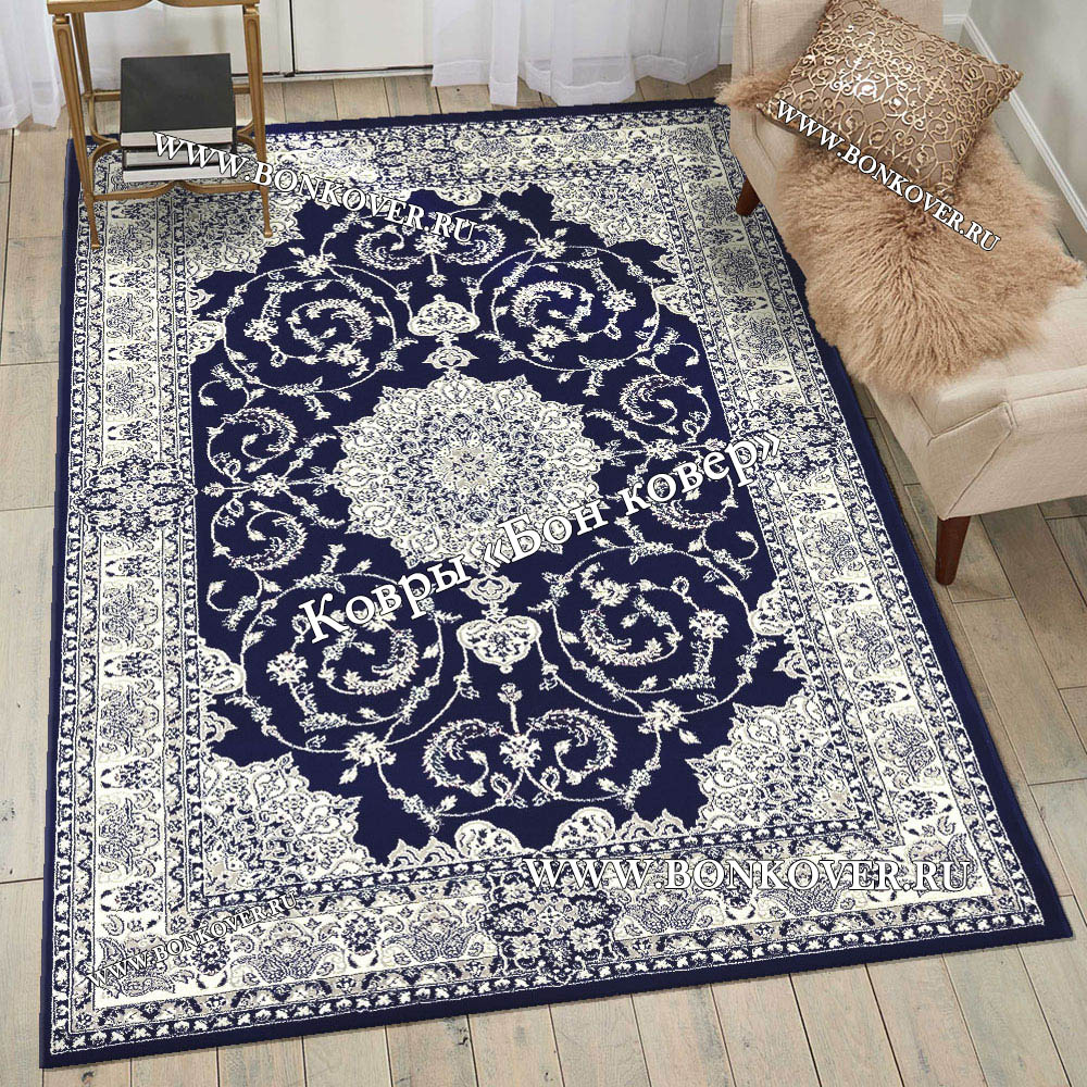 Турецкий Ковер Медальон дизайн 73 Синий станет превосходным дополнением интерьера, оформленного в современном или классическом стиле. Мягкое, но прочное, ковровое изделие обеспечивает тепло- и шумоизоляцию, отличается длительным сроком эксплуатации, пожаробезопасностью, экологичностью и высокой износостойкостью, является отличным противодействием от повышенной влажности в комнате и утеплителем для холодного пола. Благодаря качеству материалов, ковер не деформируется, сохраняет первоначальный вид под тяжестью предметов мебели. За его поверхностью легко ухаживать.